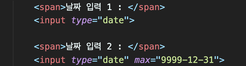 input 태그에 max 속성을 주는데, 값을 위 이미지 처럼 설정 해주면 연도는 4자리를 넘어가게 되면