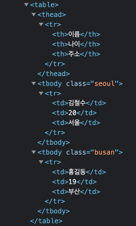 이런 경우에는 하나의 table 안에 tbody 태그를