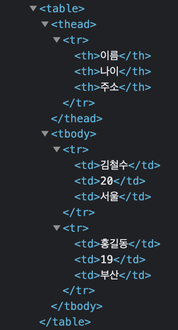 tbody 영역 안 tr 태그가 여러 개 있는데