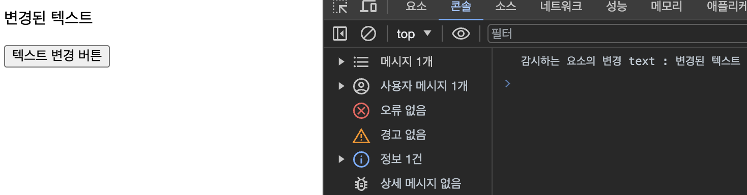 console.log('감시하는 요소의 변경 text : ' + node.textContent.trim());