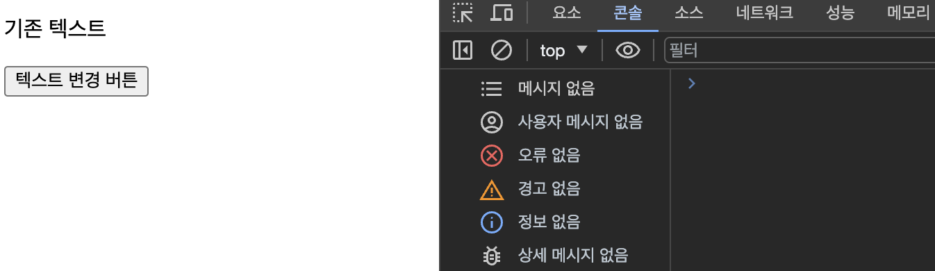 const changeTextButton = document.getElementById('changeText'); // 텍스트 변경 버튼